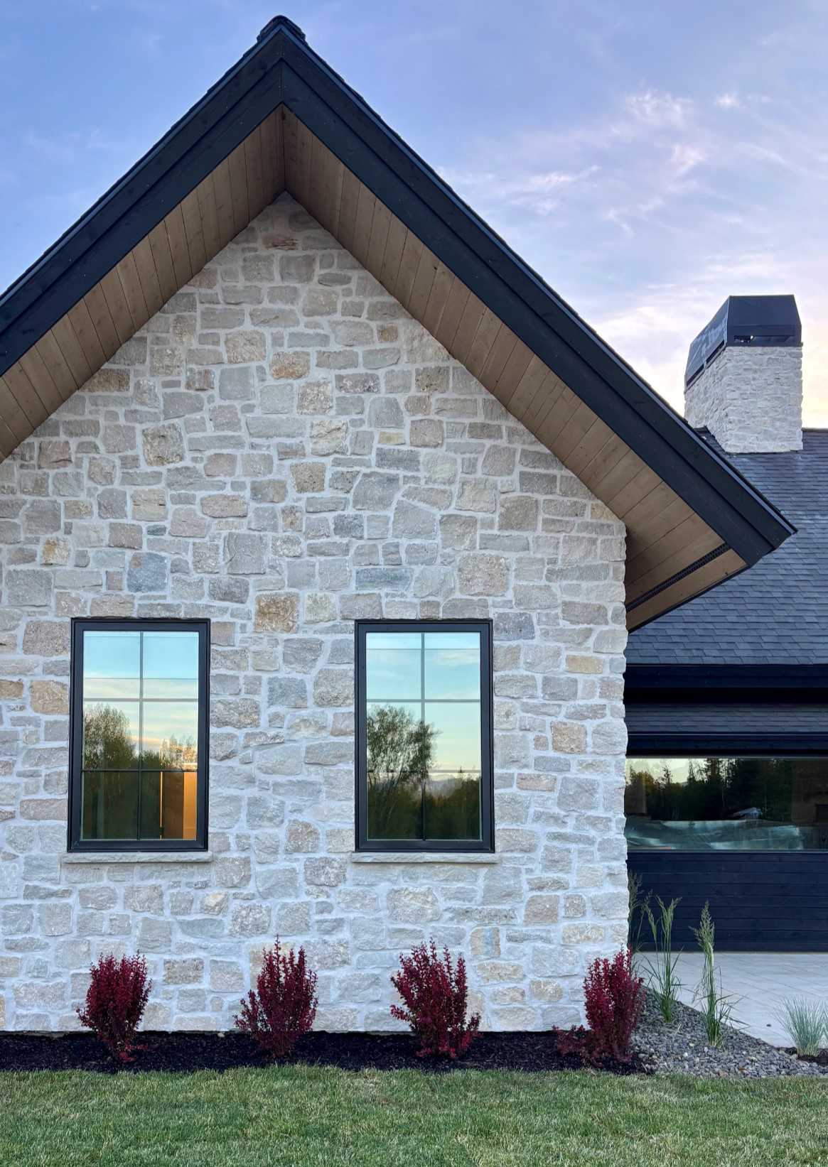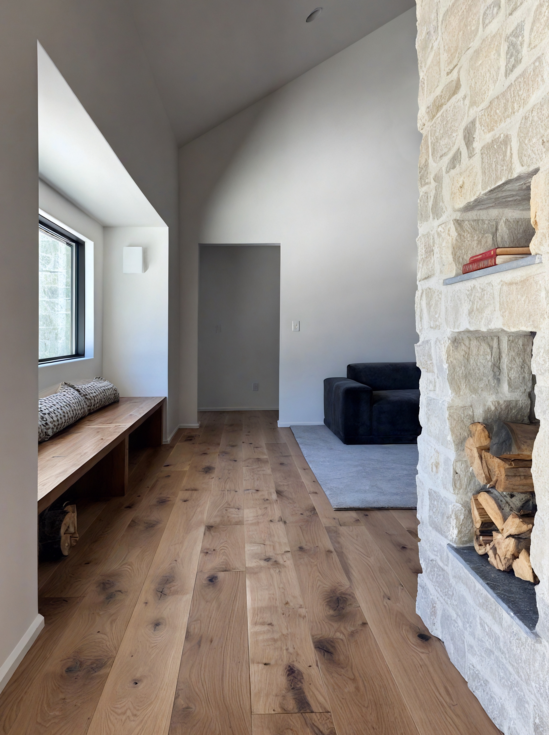 Design Concept :Home acts as visual threshold between Entry and Payette River. Outdoor landscape walls transition to stone Interior walls and back to outdoor landscape walls on the other end. Resulting in a gradient of indoor-outdoor spacial concepts.